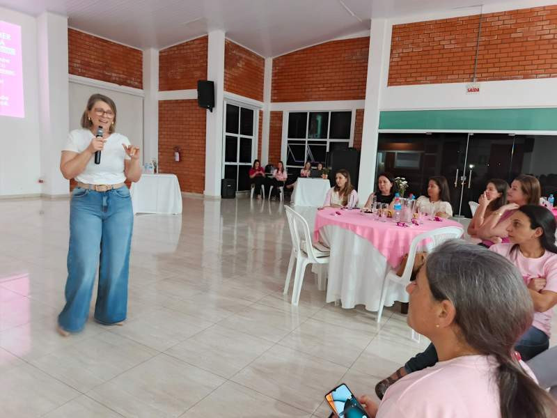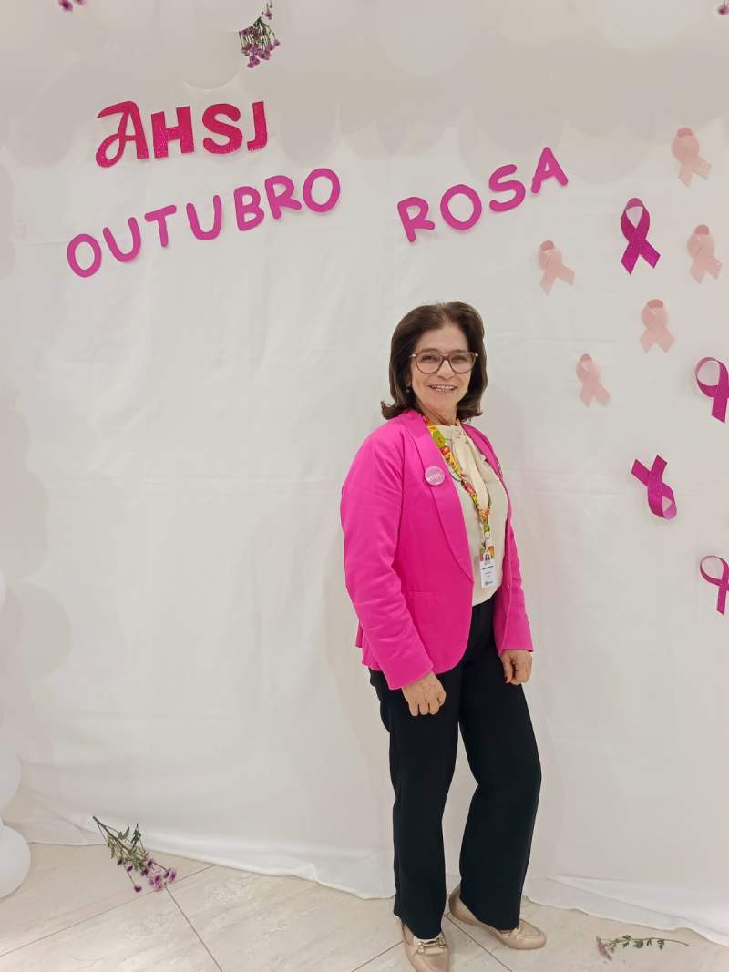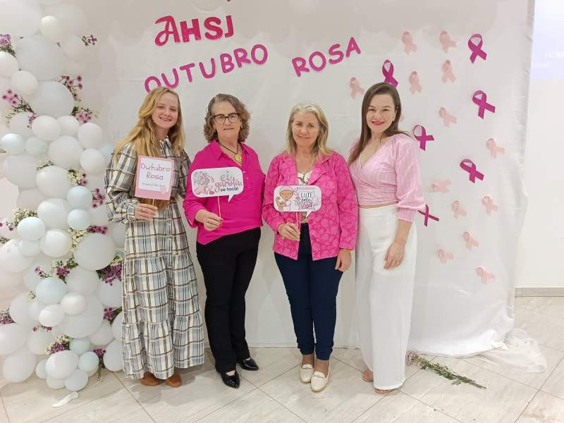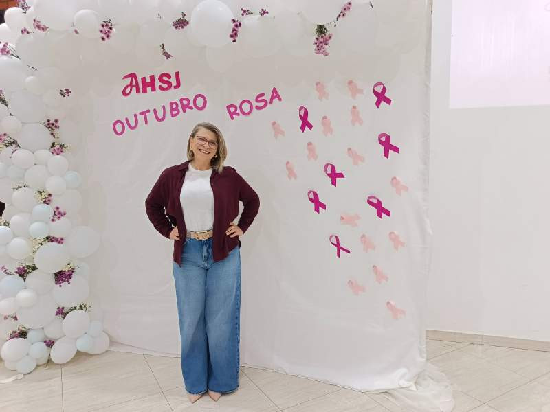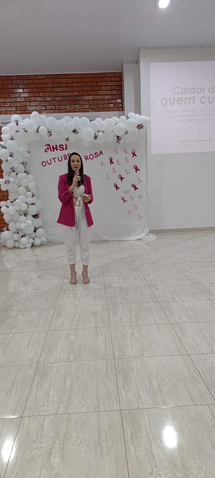 A Associação Hospitalar São José (AHSJ) promoveu, na noite desta quinta-feira, 23, um evento especial em alusão ao Outubro Rosa, mês dedicado à prevenção e ao diagnóstico precoce do câncer de mama. O momento reuniu cerca de 140 mulheres e teve como destaque a palestra da psicóloga Ivanete Di Domênico, que abordou temas como saúde mental, autoestima e autocuidado.